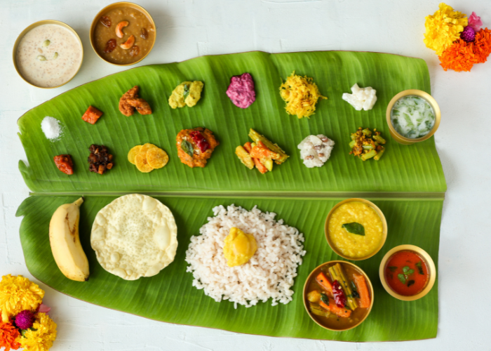 Sadhya (or Sadya) is a traditional, elaborate vegetarian feast from Kerala.